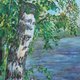 纸板上的桦木油画。 材料:底漆纸板 油画颜料