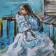 这幅舒适的油画尺寸为 21x30 厘米(8.3x11.8 英寸),描绘了一位年轻女子若有所思地凝视着平静的湖水。场景沐浴在柔和的蓝色调中,捕捉到一种宁静和倒影的感觉。这件作品的灵感来自北方风景的宁静之美,传达了自然与内省相遇的安静、和平的时刻。冷色调唤起了北方国家常见的清新空气和宁静,营造出舒适和沈思的氛围。