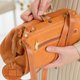 包款严选日本顶级多油脂植鞣牛革制作,质地柔软富含丰富的油脂光泽感,呈现出迷人的典雅气息。本体设计以经典医生包ㄇ字体开阖设计,带出女性优雅兼具古典风韵味。