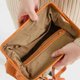 包款上方为黄铜五金压扣做固定,内里大空间收纳袋X1,方便置入随身长夹与用品。内面前方开口式小收纳袋X1;后方内面拉链式收纳袋X1。