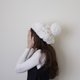 - 粗针麻花可拆毛球针织毛线贝蕾帽-白