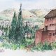 以钢笔打稿再以淡彩上色,描绘西班牙🇪🇸阿罕布拉宫附近风景。包邮、含木框!不含作品着作财产权