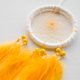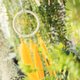 捕梦网材质 : 塑胶环、韩国绒绳(白色)、线、珠珠、羽毛(橘色)