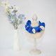 亮蓝丝绸衣领饰有 DAISY SWEET 雏菊。
