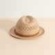 苑里的蔺草帽过去曾为外销日本的大宗,而蔺子的爵士帽便是承袭传统的老派经典。蔺草具有吸湿排汗的效果,编织成草帽,除了实用之外,更能为日常的穿搭增添风采。“爵士帽”是绅士帽的分支,男女皆宜,在后期有许多爵士歌手佩戴,因而得名。帽顶上有承袭自绅士帽的凹陷,刚刚好可以一手掌握;帽檐微微上翻,显得更俏皮有趣。