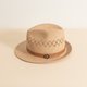 **素食皮革帽带的设计,使得原本给人感觉较休闲的草帽,多了一点端庄与正式感。我们期望草帽的配戴,能够不局限于场合,给大家多一点的搭配想像!**