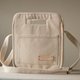 Biscuit-like shoulder bag with adjustable straps and leather details. Three inner pockets and one outer pocket. Lightweight, padded, fit to iPad mini, pocketbook and wallet standard size.