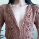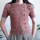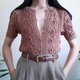 复古棕色纯棉手工钩编衬衫,短袖纽扣钩编上衣,非常漂亮