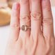 戒围圈是国际围10号,因为戒圈宝石台座的设计,图中设计师无名指是9号可以戴,中指的10号会卡有一点点紧。