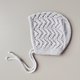 婴儿帽由棉 \ 美利奴羊毛编织而成,图案精美。 新生儿帽子柔软且防过敏。 它非常适合婴儿拍照和作为婴儿礼物。 尺寸 - 尺寸 - 0-3 个月