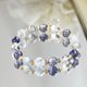 ● 这款手链所用的堇青石成色非常优质,冰种透亮,将堇青石独特的灰蓝紫色表现无遗,搭配拉长石的灰蓝彩光,无论从任何角度欣赏,都能呈现她优雅的莫兰迪色系感,数量稀少,值得收藏。