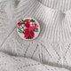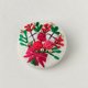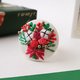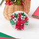 这款作品是以圣诞红为主色调的玫瑰、果实和棉花,扎成一束花束并用丝带系住。