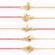 红绳在台湾传统文化中,象征祝福、吉祥、开运,设计师以红绳与金链各半的形式呈现手链,将传统与时尚结合。