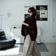 - 是半松紧腰,前有裤扣和拉链,所以把上身扎进去也可以更简约