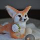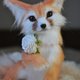 This cute little fennec fox cub will bring you joy and smiles. It is very pleasant to hold in your hands, or it can lie on the shelf and please you.