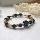 以银曜石、红虎眼、黄虎眼、米黄玉、白水晶,搭配14kgf黄铜配饰,设计而成的一款开运招财冲事业,天然水晶手链。