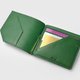 除了钞票剪刀夹外,内部还有 3 个口袋,因此还可以放置信用卡和 IC 卡。口袋的斜切设计不仅可以轻松看到卡片,而且也方便取放卡片。另外,正面右下角斜切的设计是受到商店标志启发的形状。