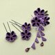 以亮粉色古布(和服布料)制成的樱花造型发饰三件组。