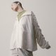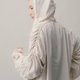 此款式纳入了飞行军装的袖身抽皱作法,在合身版型的架构上令手臂的视觉产生新的修饰效果,轻量且舒适,包含贴身方形斜口袋的机能属性,连帽设计的休闲感,都能让款式更简单地融入日常搭配中。