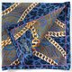 这款复古丝巾设计大胆吸睛,以强烈的豹纹图腾结合 oversized 的金链元素,营造出戏剧性且奢华的宣言风格。