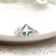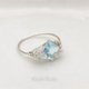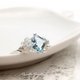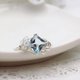 Diamond-shaped sky blue topaz is decorated with white topaz and freshwater pearls to create a wire ring.