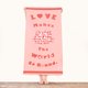 毛巾上由18个不同语言的LOVE组成的 Hello Kitty,象征不管一个人来自哪里,只要心中有爱,聚在一起就有力量。