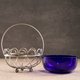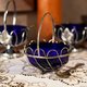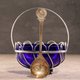 英国钴蓝玻璃镀银提碗附茶匙/零食碗/香氛碗