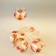 手绘酒/香槟杯 4 件组。秋叶设计。玻璃表面的软金霜效果。多色秋叶,玫瑰金铜漩涡。