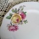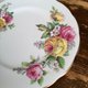 这款茶碟整体状况良好,无明显裂痕或缺角。盘面光滑,“Manor Roses”的花卉图案鲜艳细致,展示出精美的粉红和红玫瑰。边缘的金边装饰大部分完好,仅有轻微岁月痕迹,属正常老件现象。