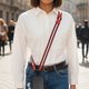 时尚条纹设计,经典百搭。这款可调式手机背带采用 25mm 宽、2mm 厚的棉质宽版织带,搭配意大利植鞣革饰边,佩戴舒适,轻松减压。