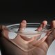 白玉玻璃与透明玻璃形成对比的纹样,手工吹制而成,适合承装小菜。