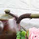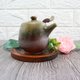 将手工拉坏的壶未上釉放入柴窑中,持续不断地燃烧木柴提供热力,木柴燃烧所产生的灰、烟落在侧把壶游走,产生出不同的自然灰釉色泽和火痕变化,搭上作品本身造型之细致美,造就了柴烧后所呈现的各样光泽与迷人之处.。