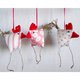 The birds are made of cotton and stuffed with hollow fiber. You can hang them as horizontally or vertically.