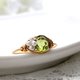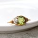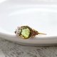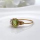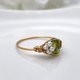 橄榄石上镶有淡水珍珠,制成金属丝戒指。