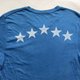 After indigo dyeing, we use a paper pattern to remove the color called "discharge printing" to create letters and patterns.
