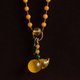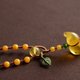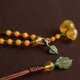 如阳光一般光芒耀眼的琥珀金绞蜜葫芦项链,蜜意如云似雾,寓意福禄临门,搭配金珀心经雕刻圆珠,用以保佑平安,远离不顺。搭配天然和田玉双面六福花,寓意,六福临门。明艳雅致,精巧古典。