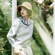 This frill collar blouse is made from smooth, lightweight Linen. It has long sleeves, Back shell button