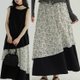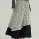 黑白色調 不規則拼接碎花裙子 復古休閒百搭拼接印花長裙