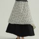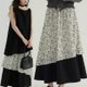 黑白色調 不規則拼接碎花裙子 復古休閒百搭拼接印花長裙 - 裙子 - 棉.麻 黑色