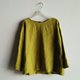 黄绿色亚麻布搭配朴实的椰壳扣 相当融洽