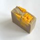 今年艾草皂的设计是超大块蜂蜜皂,镶嵌在艾草皂上,平安防虫的精油香味,与台东原生蜂蜜的大块滋养,绿色中加入保养锦囊:酪梨油。