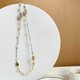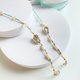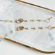 We use white freshwater pearls as the main material decorates with multicolor beads and golden seashells in these handmade glasses and mask chains. We use copper wire to string everything together. Outstanding with the intersection between the lines