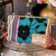 使用法式雅卡尔织布制成的口金包。凹凸厚实的拼布感可感受到不同材质所带来的乐趣。附可拆卸的肩背带。可放入手机与护照的尺寸,或可直接作为口金包钱包使用。日常使用或是旅行时都很适合。 尺寸:长12cm,宽18cm,底部3cm,肩带100cm 产地:日本 材质:表布化纤,棉。里布化纤