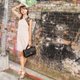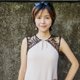 - 黑羽毛镂空蕾丝,镶接于肩上两侧,前中蝴蝶结绑带缀饰,淡淡粉色,温柔婉约、优雅动人。