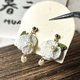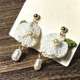 花侧延伸嫩叶装饰,下方垂坠一颗不规则仿珍珠水滴,增添微光流转的静谧气息。