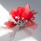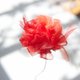 我们将欧根纱布料撕成条状,編织出充满空气感且柔软的花朵。撕裂的过程赋予了柔软布料韧性,通过一针一线扎实地編织,打造出蓬松立體的层次感。