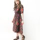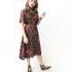 【RE0614D1278】初夏复古昭和风黑色几何花朵短袖古着洋装