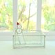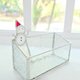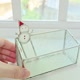卡片座特地使用透明波点的玻璃,营造出一片雪景,中间是一块透雪花白玻璃像极了一条雪路,小雪人从雪路慢慢爬上了卡片座,静待圣诞的来临。