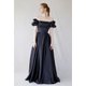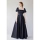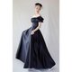 泡泡袖黑色绸缎加大码礼服