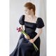 方形领口与收腰设计突显女性化的轮廓,